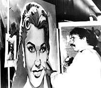 Je travaillais avec de l’acrylique couleur et m’amusais à mélanger les coloris afin d’obtenir des tons chauds, vifs ou criards. Au pinceau ou avec le pistolet, je n’hésitais pas à forcer les traits du visage des acteurs en accentuant la dureté des regards, des sourires ou des rictus.