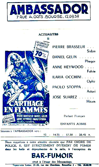 LES ANCIENNES SALLES DE CINÉMA DE BRUXELLESCINÉMA AMBASSADOR(12.5.1931-1989)7, rue Auguste Orts - 1000 Bruxelles