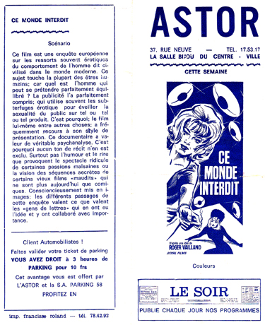 Cinéma ASTOR : 26 juin 1954 - 30 décembre 1973