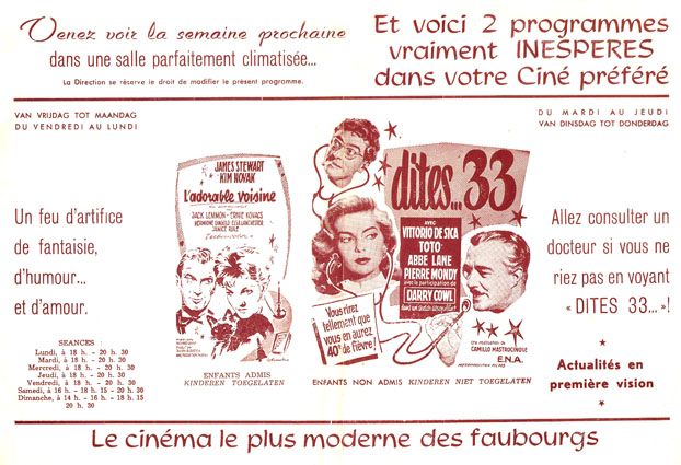 Á première vue, le prix des places nous reléguait d’emblée dans la catégorie sociale à laquelle nous appartenions, mais pourtant celles à 5 francs me semblaient un « must », et je trouvais même ridicule que l’on puisse s’asseoir au fond de la salle, même si c’étaient les seuls sièges capitonnés de velours rouge.