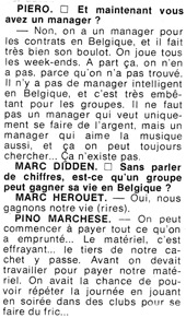 Bob Dartsch : On a travaillé d'arrache-pied pour arriver à sortir des sentiers battus et à construire un groupe qui ait à la fois un style et un son particulier. Avec Pietro Lacirignola qui jouait sur deux sax à la fois, on créait la surprise. Certains nous comparaient parfois à Van Der Graaf Generator.